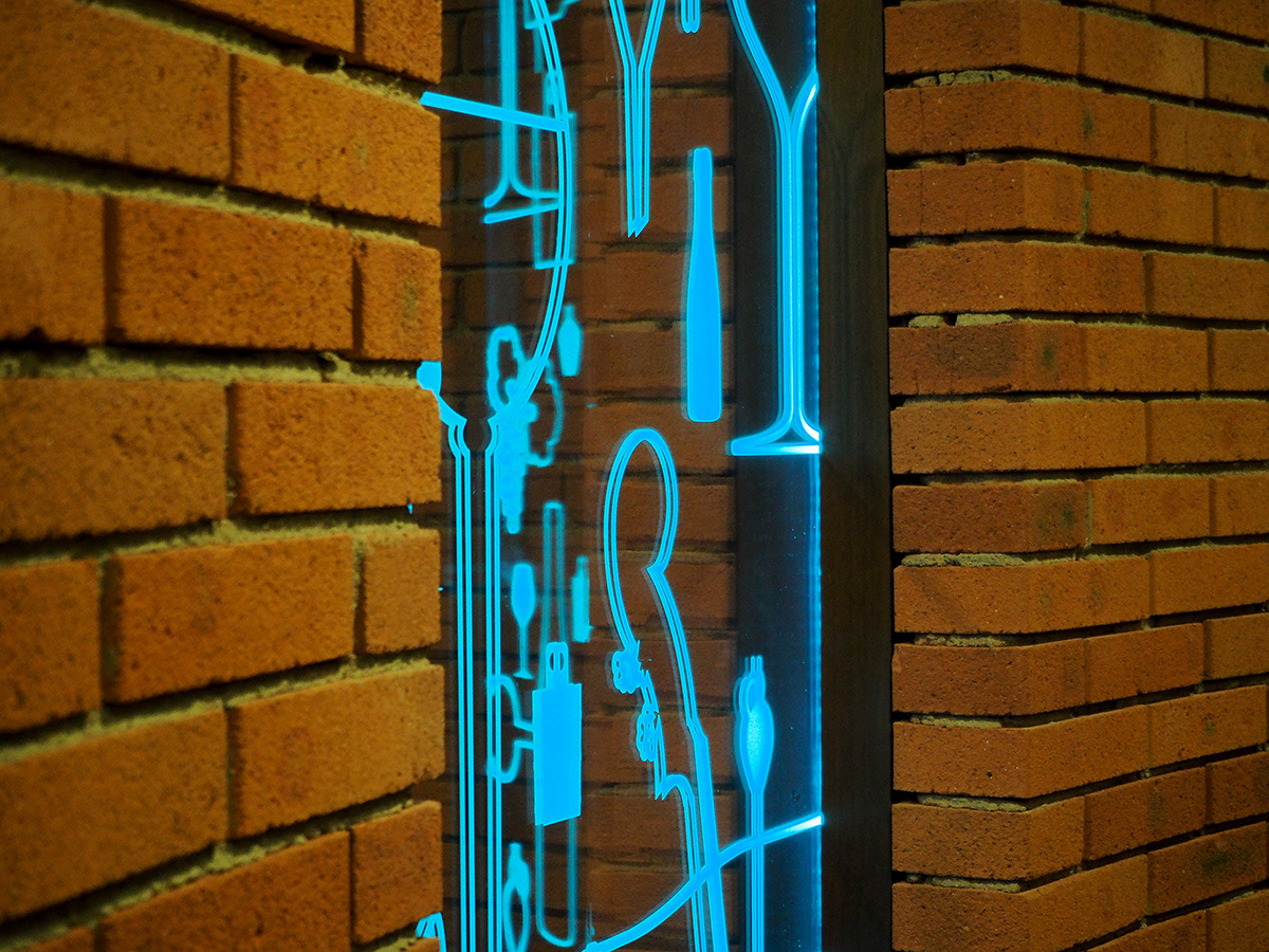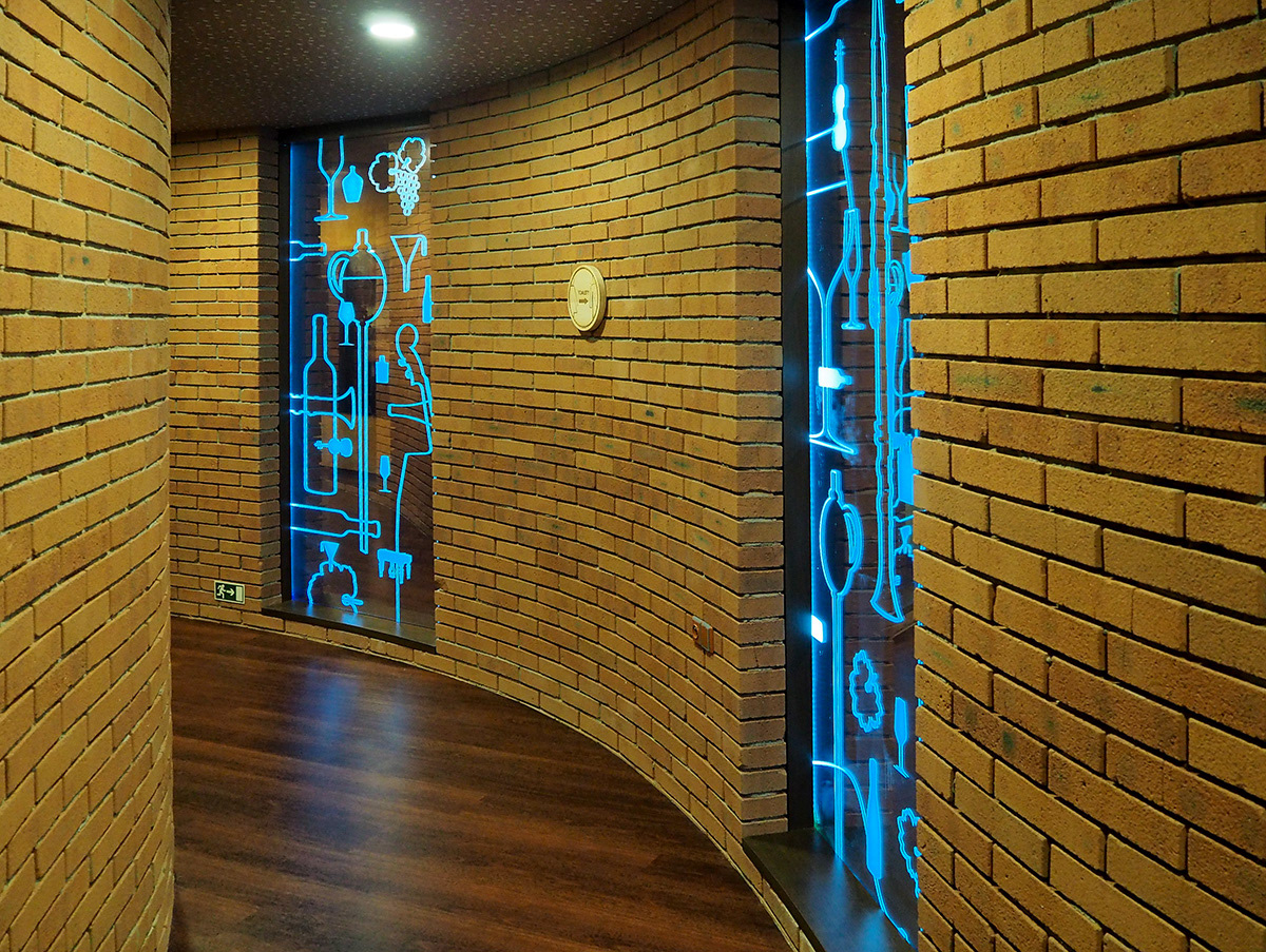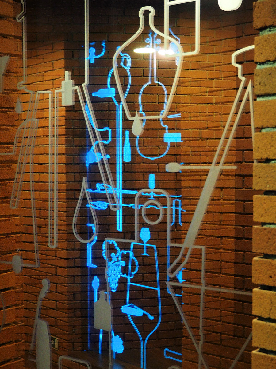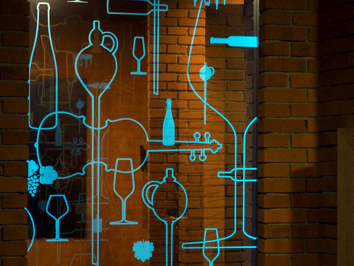 Jednorázová spolupráce na dotvoření Stezky vína a slivovice v Centru slováckých tradic v Modré u Velehradu. Stylizované vinařské a „páleničářské“ motivy byly na sklo aplikovány pomocí fólie imitující pískování.